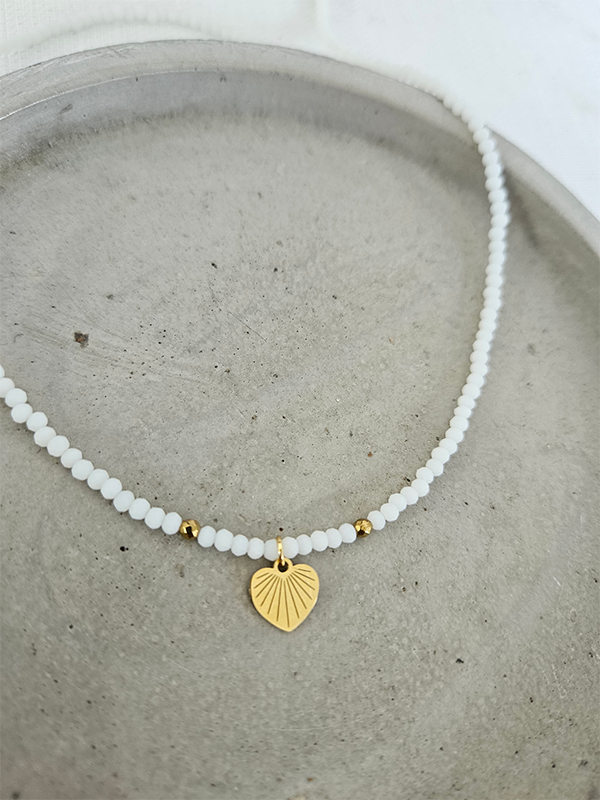 השרשרת ‘קריסטלים לב זהב’ משלבת קריסטלים לבנים וזהב עם תליון לב זהב סטיינלס סטיל (מתכת אל-חלד המצופה זהב, עמידה למים ואינה משחירה)